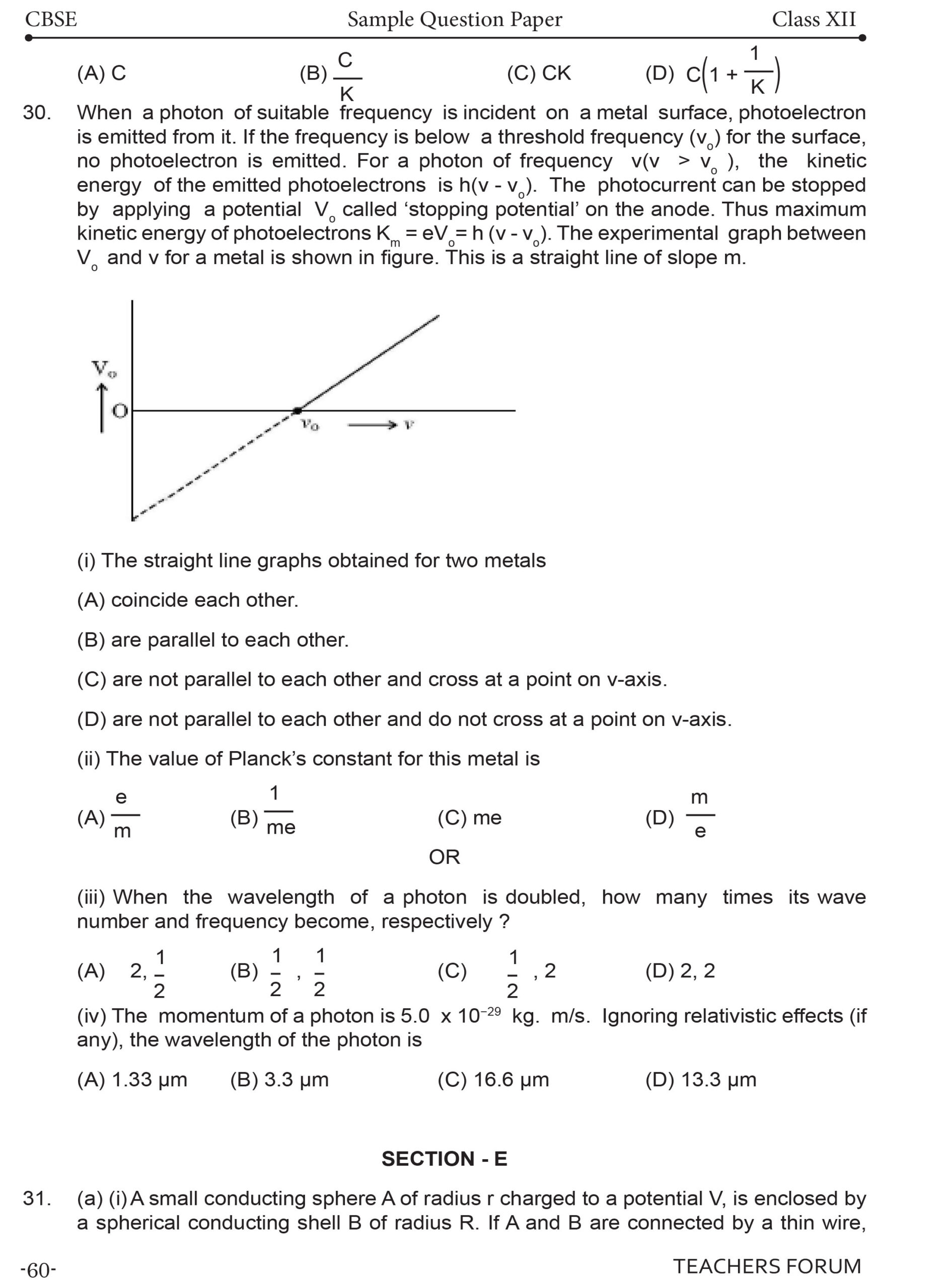 Teachers Forum CBSE Sample Question Paper Class 12 Physics (For 2026 Board Exam)